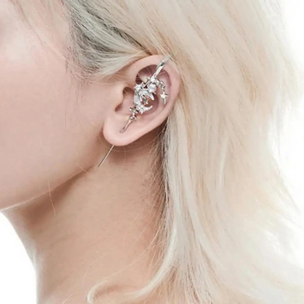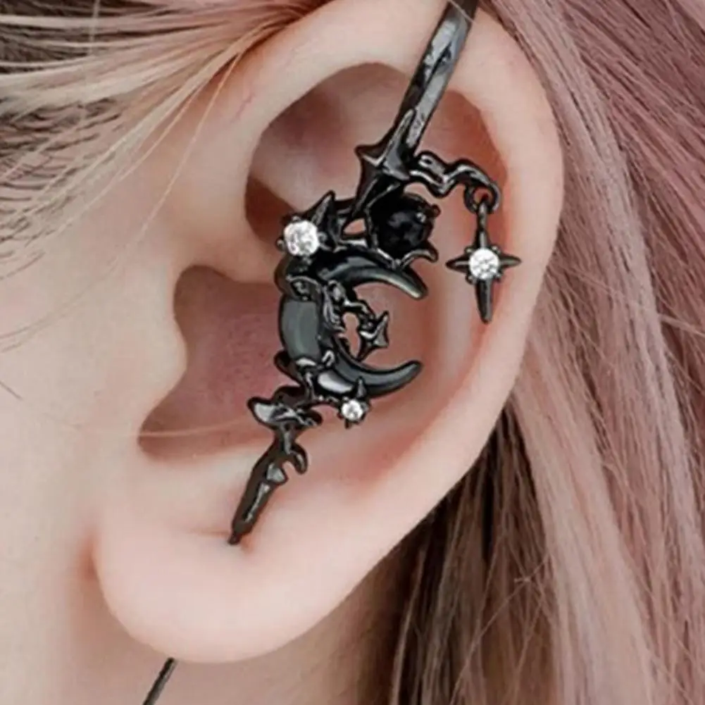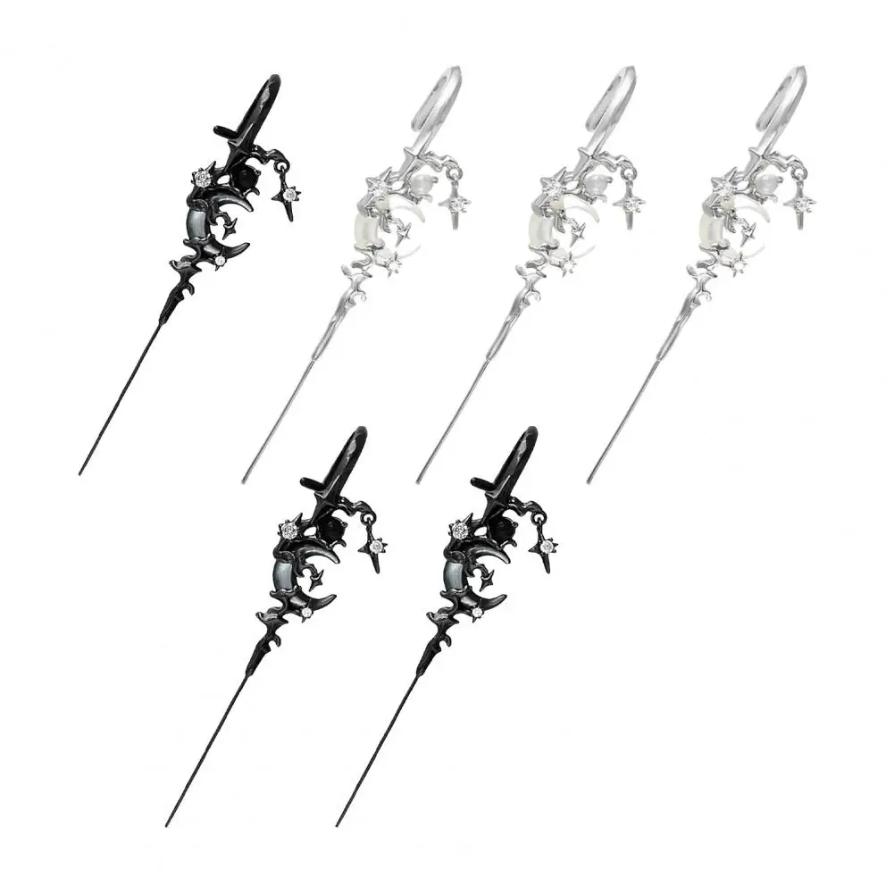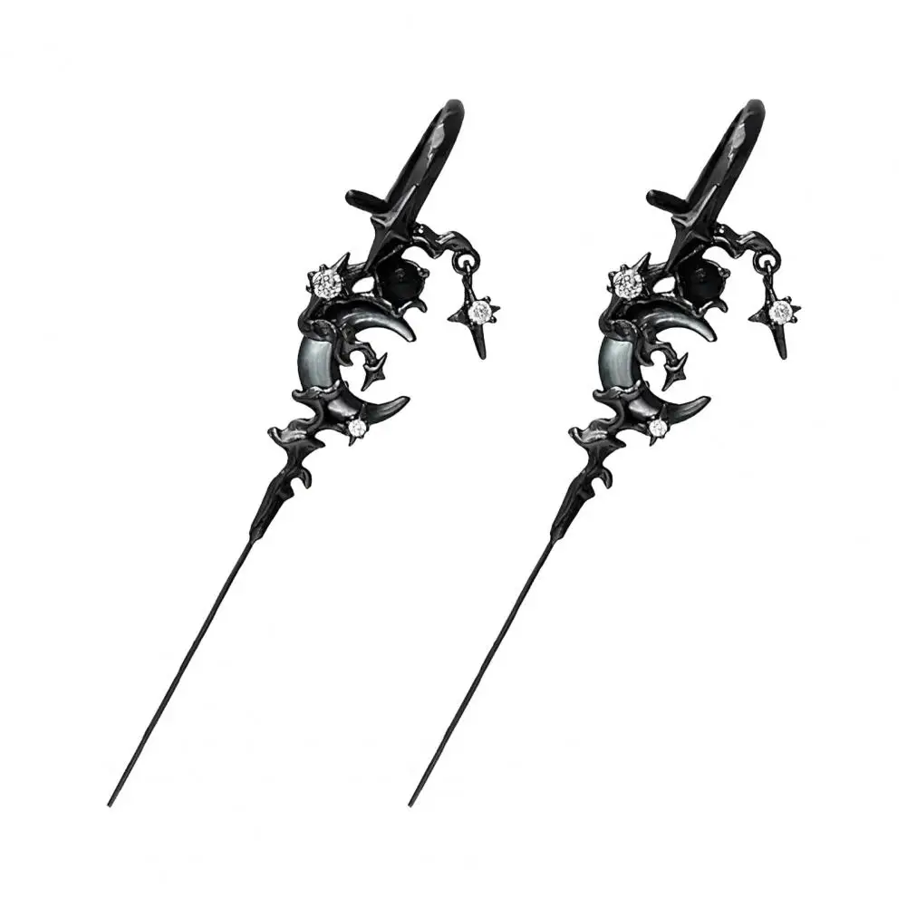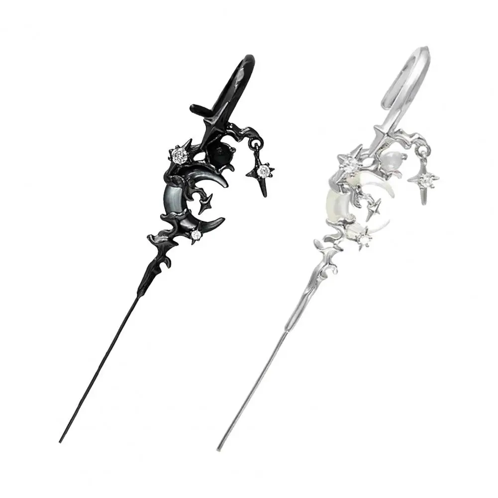 1 Pair Ear Needles Myth of The Moon Punk Rock Dark Style Individual Piercing Earrings Star Moon Ear Cuffs Club Party Jewelry