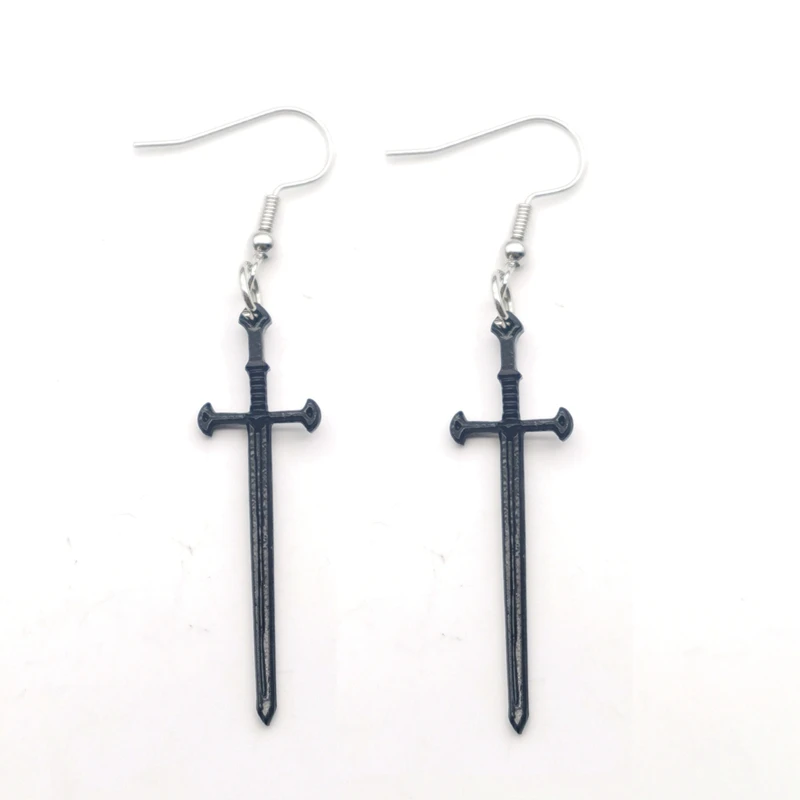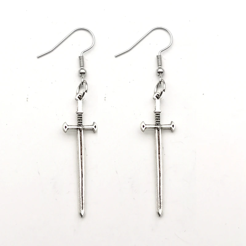 1 par mini espada legal do vintage brincos feminino punk orelha aros para mulheres jóias longa espada brincos longo único gothic brinco