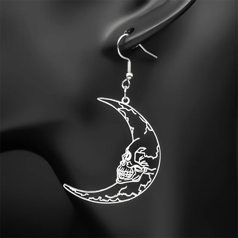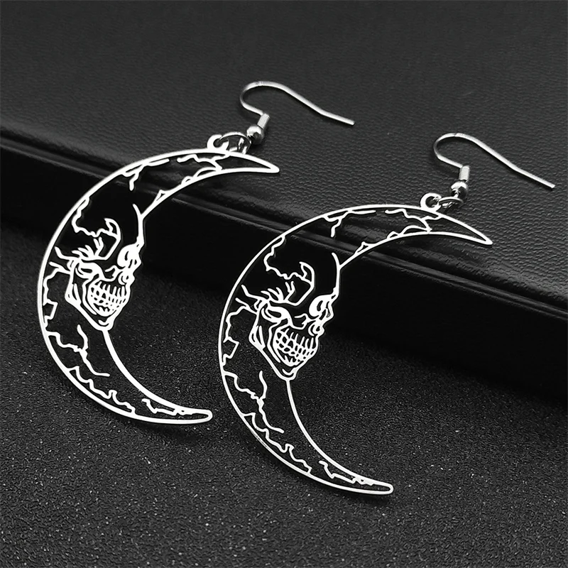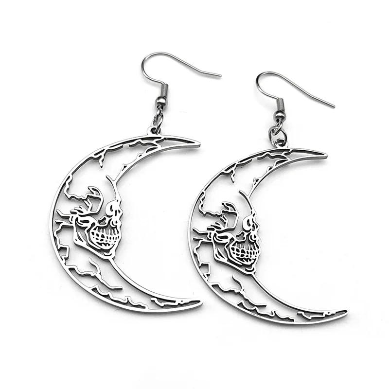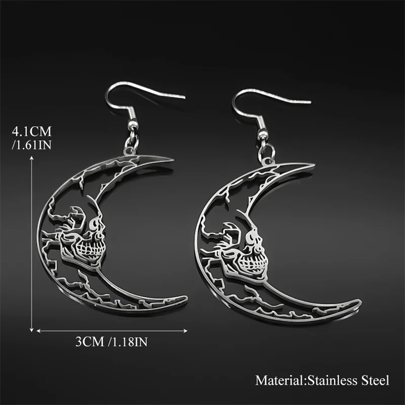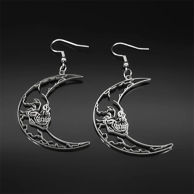 Shape Earrings: Gothic Witchcraft Crescent Moon Stainless Steel Drop Earrings