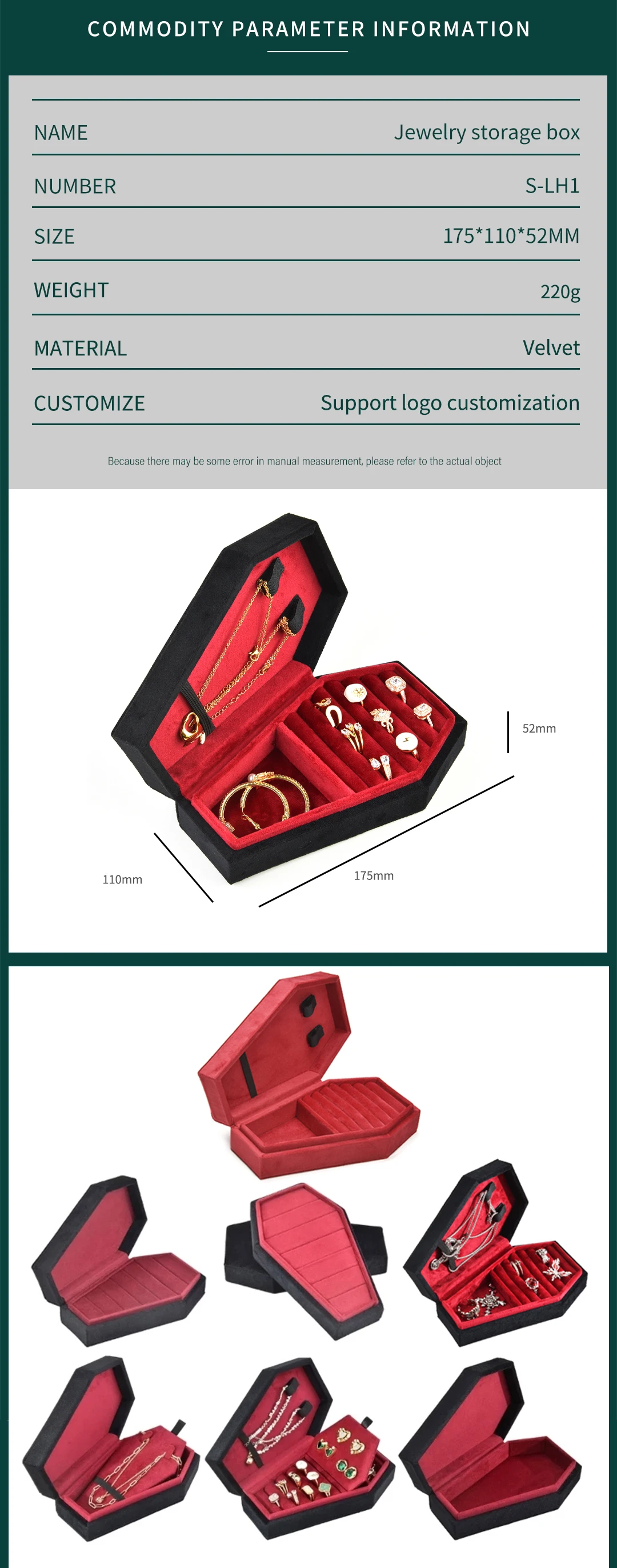 ????A grande caixa de joias de caixão oferece um espaço de armazenamento organizado de forma inteligente para anéis, coisas grossas, colares e qualquer outra coisa que você possa precisar para guardar com segurança.Inclui um pequeno espaço para itens maiores, bem como slots clássicos para anéis.